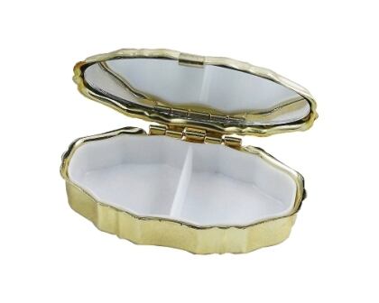 B級品 鏡付き携帯ピルケース 楕円 ゴールド 3個セット