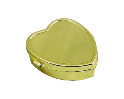 B級品3個セット 鏡付き 携帯ピルケース ハート型 ゴールド